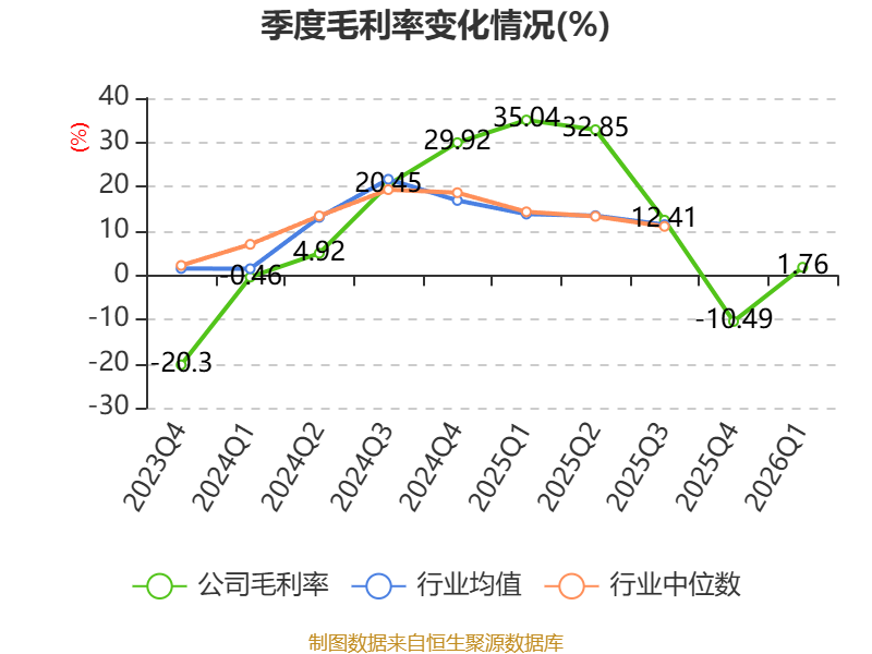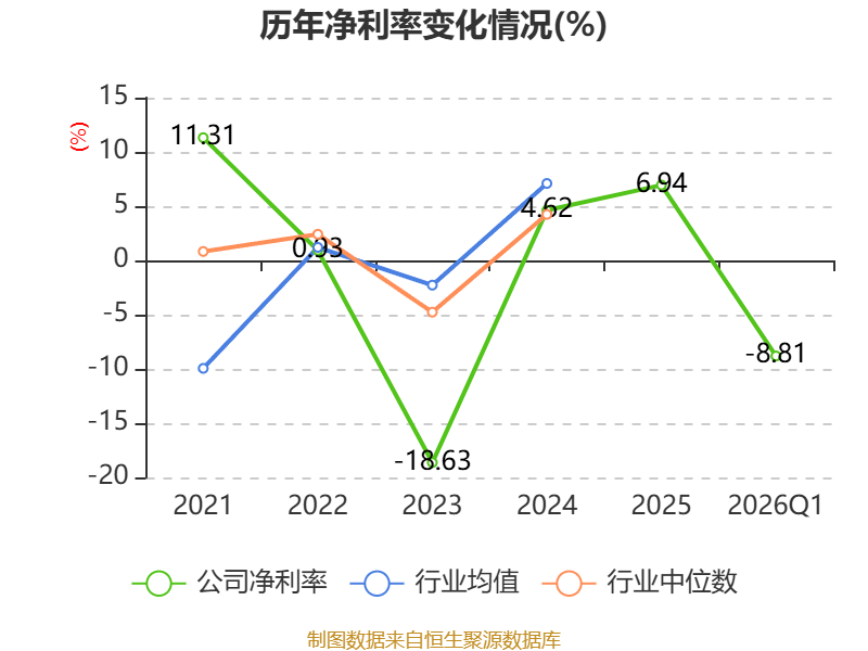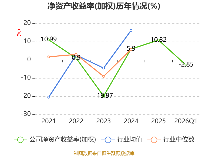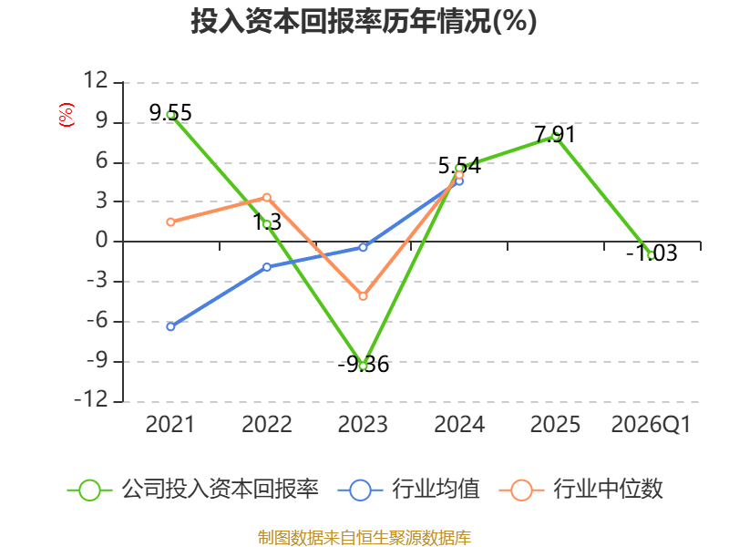 盈利能力方面, 2026年一季度公司加权平均净资产收益率为-2.85%,同比下降14.76个百分点。公司2026年第一季度投入资本回报率为-1.03%,较上年同期下降8.11个百分点。