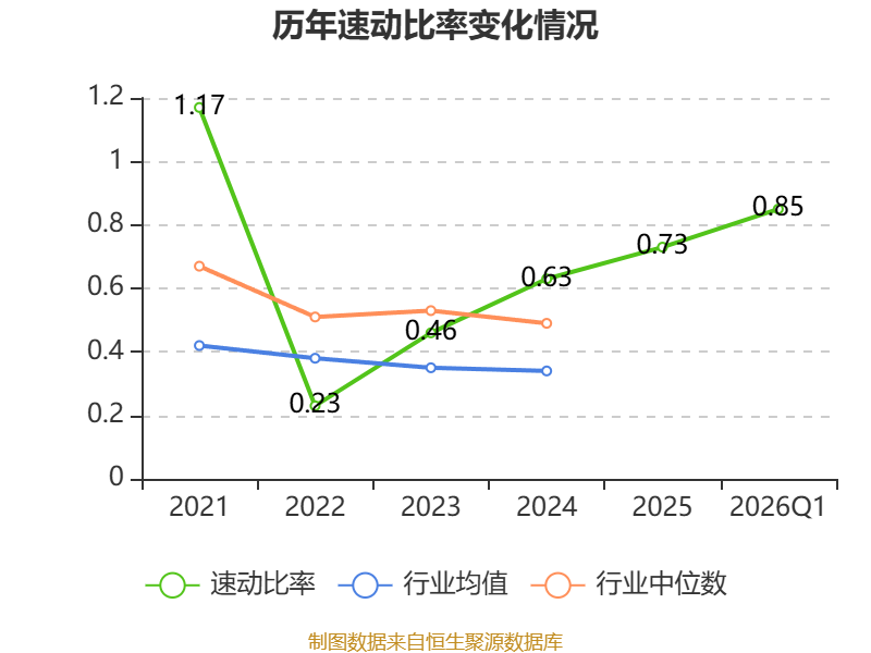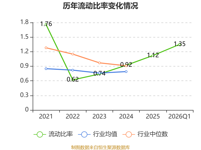 2026年第一季度,公司流动比率为1.35,速动比率为0.85。