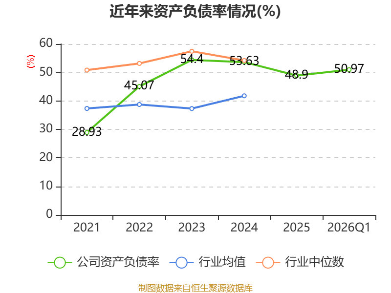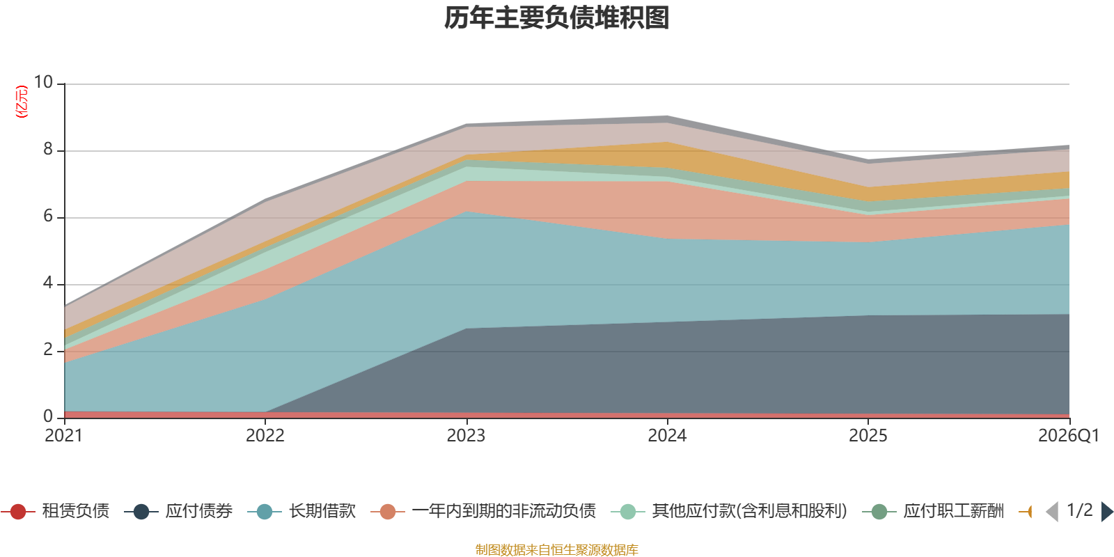 负债重大变化方面,截至2026年一季度末,公司长期借款较上年末增加22.53%,占公司总资产比重上升2.91个百分点;应付职工薪酬较上年末减少26.19%,占公司总资产比重下降0.53个百分点;合同负债较上年末增加17.23%,占公司总资产比重上升0.43个百分点;一年内到期的非流动负债较上年末减少5.06%,占公司总资产比重下降0.32个百分点。
