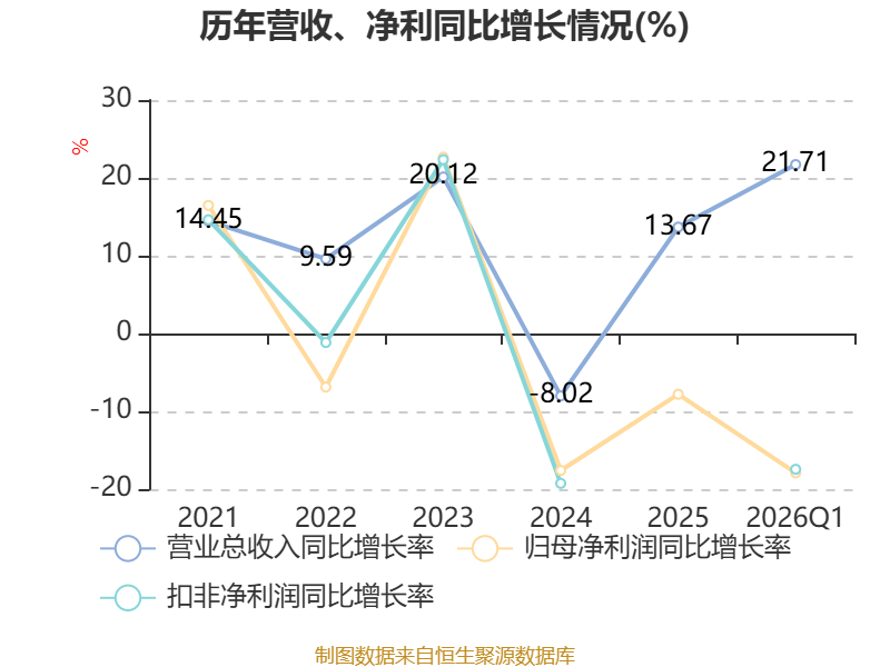 负债重大变化方面,截至2026年一季度末,公司应付票据及应付账款较上年末减少12.04%,占公司总资产比重下降0.74个百分点;合同负债较上年末减少9.69%,占公司总资产比重下降0.29个百分点;应付职工薪酬较上年末减少24.11%,占公司总资产比重下降0.21个百分点;长期递延收益较上年末减少4.69%,占公司总资产比重下降0.04个百分点。