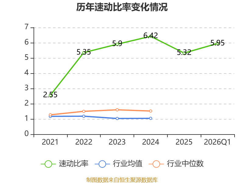2026年第一季度,公司流动比率为6.58,速动比率为5.95。