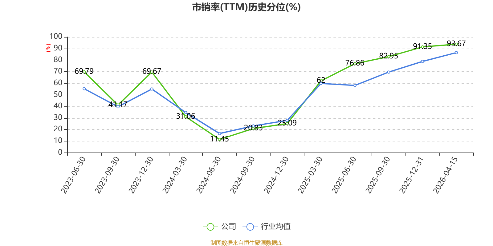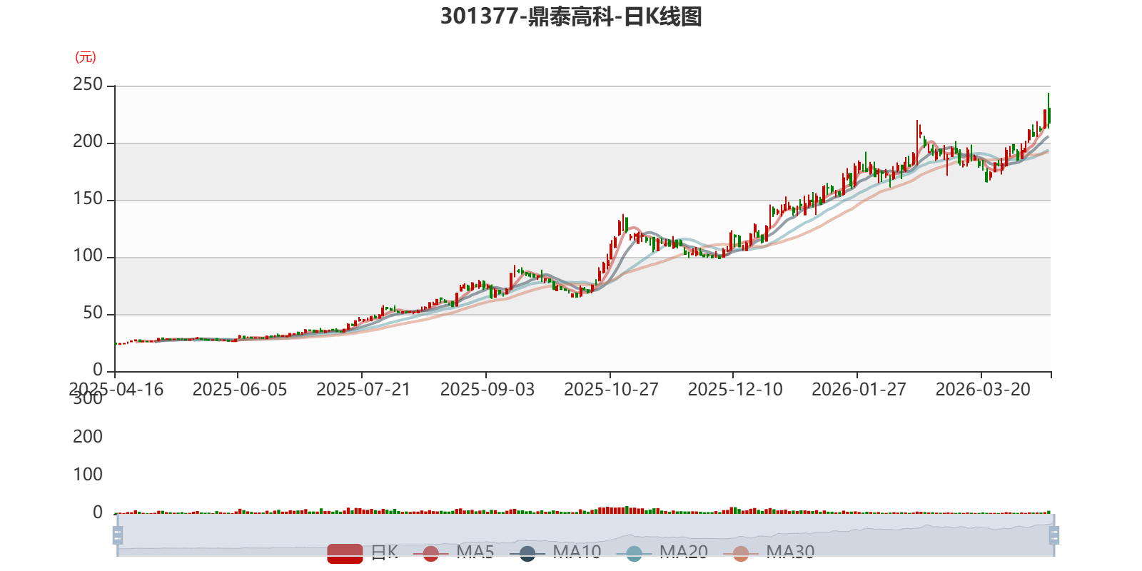 以4月15日收盘价计算,鼎泰高科目前市盈率(TTM)约为143.32倍,市净率(LF)约30.7倍,市销率(TTM)约35.15倍。