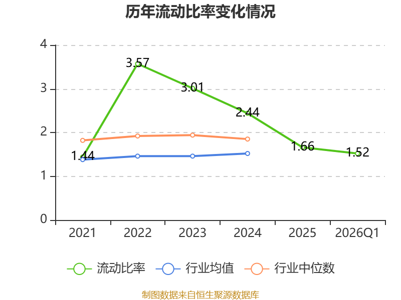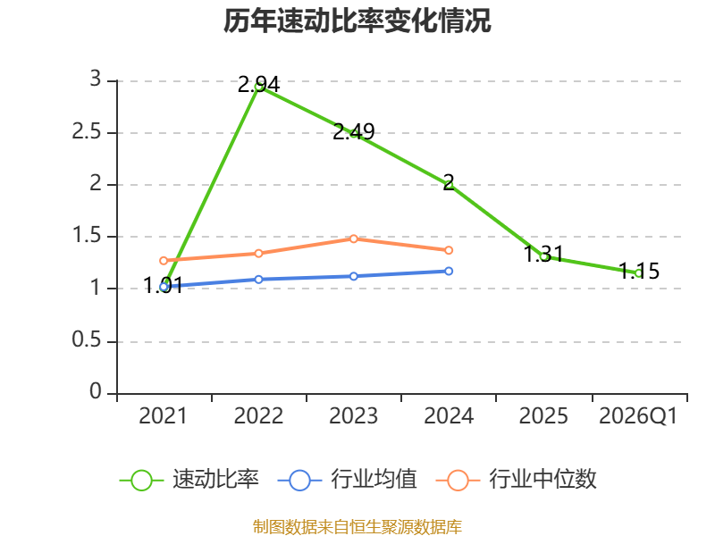 2026年第一季度,公司流动比率为1.52,速动比率为1.15。