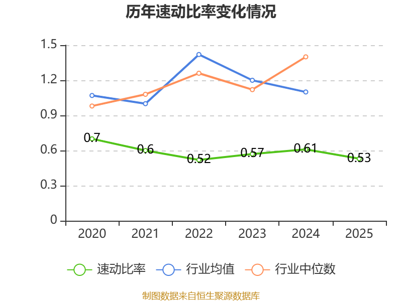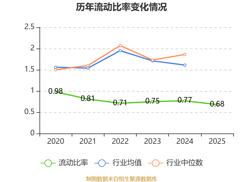 2025年,公司流动比率为0.68,速动比率为0.53。
