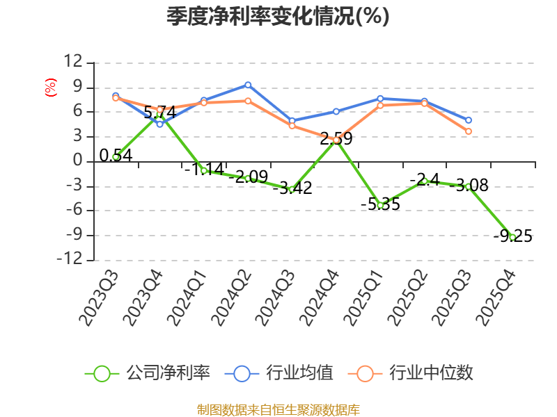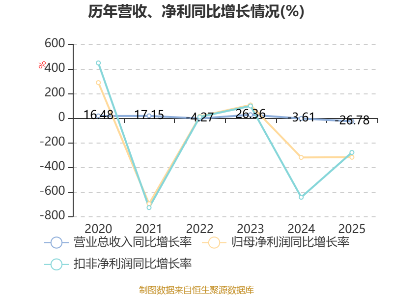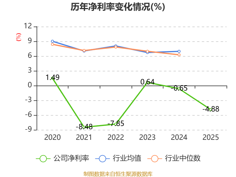 数据显示,2025年公司加权平均净资产收益率为-16.78%,较上年同期下降13.32个百分点。公司2025年投入资本回报率为-5.18%,较上年同期下降6.37个百分点。