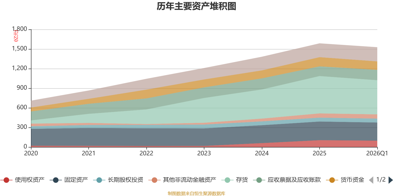 资产重大变化方面,截至2026年一季度末,公司存货较上年末减少8.55%,占公司总资产比重下降1.8个百分点;应收票据及应收账款较上年末增加6.83%,占公司总资产比重上升1.03个百分点;其他应收款(含利息和股利)较上年末增加38.8%,占公司总资产比重上升0.39个百分点;货币资金较上年末减少7.75%,占公司总资产比重下降0.37个百分点。