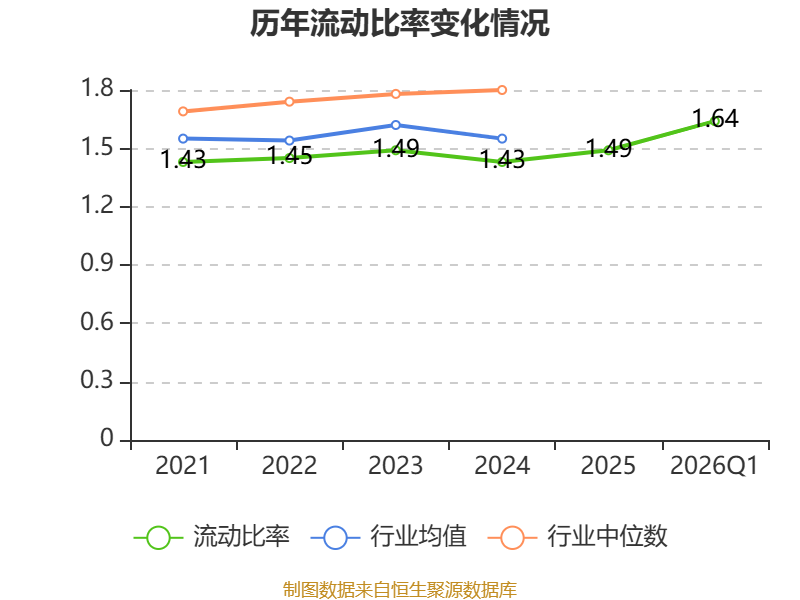 2026年第一季度,公司流动比率为1.64,速动比率为0.66。