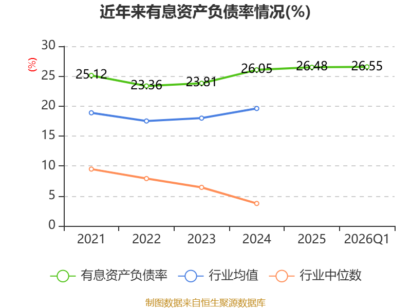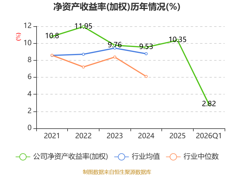 盈利能力方面, 2026年一季度公司加权平均净资产收益率为2.82%,同比上升0.09个百分点。公司2026年第一季度投入资本回报率为1.98%,较上年同期上升0.01个百分点。