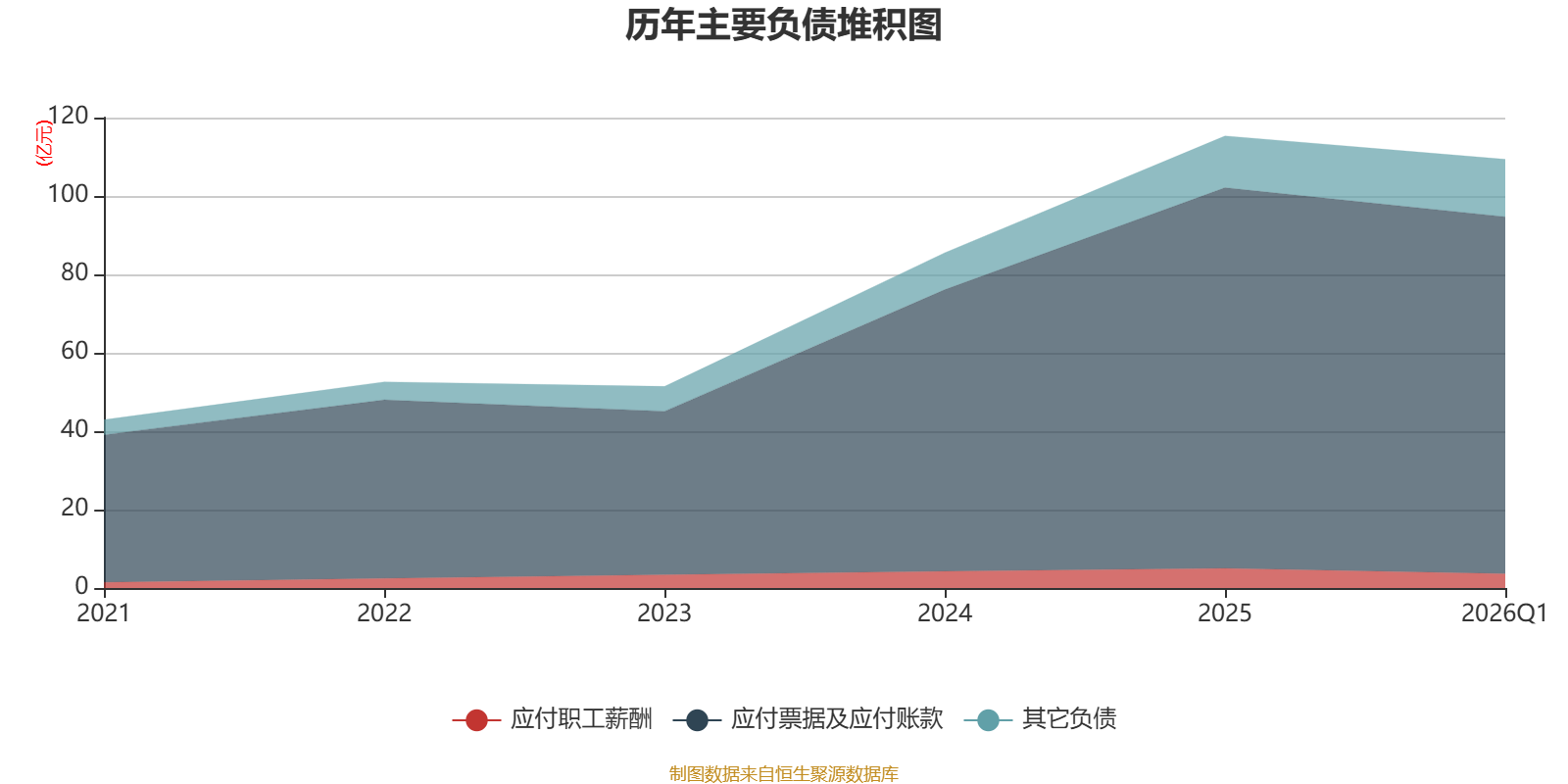 负债重大变化方面,截至2026年一季度末,公司应付票据及应付账款较上年末减少6.24%,占公司总资产比重下降2.93个百分点;应付职工薪酬较上年末减少27.44%,占公司总资产比重下降0.71个百分点;应交税费较上年末增加61.94%,占公司总资产比重上升0.38个百分点;合同负债较上年末增加9.24%,占公司总资产比重上升0.24个百分点。