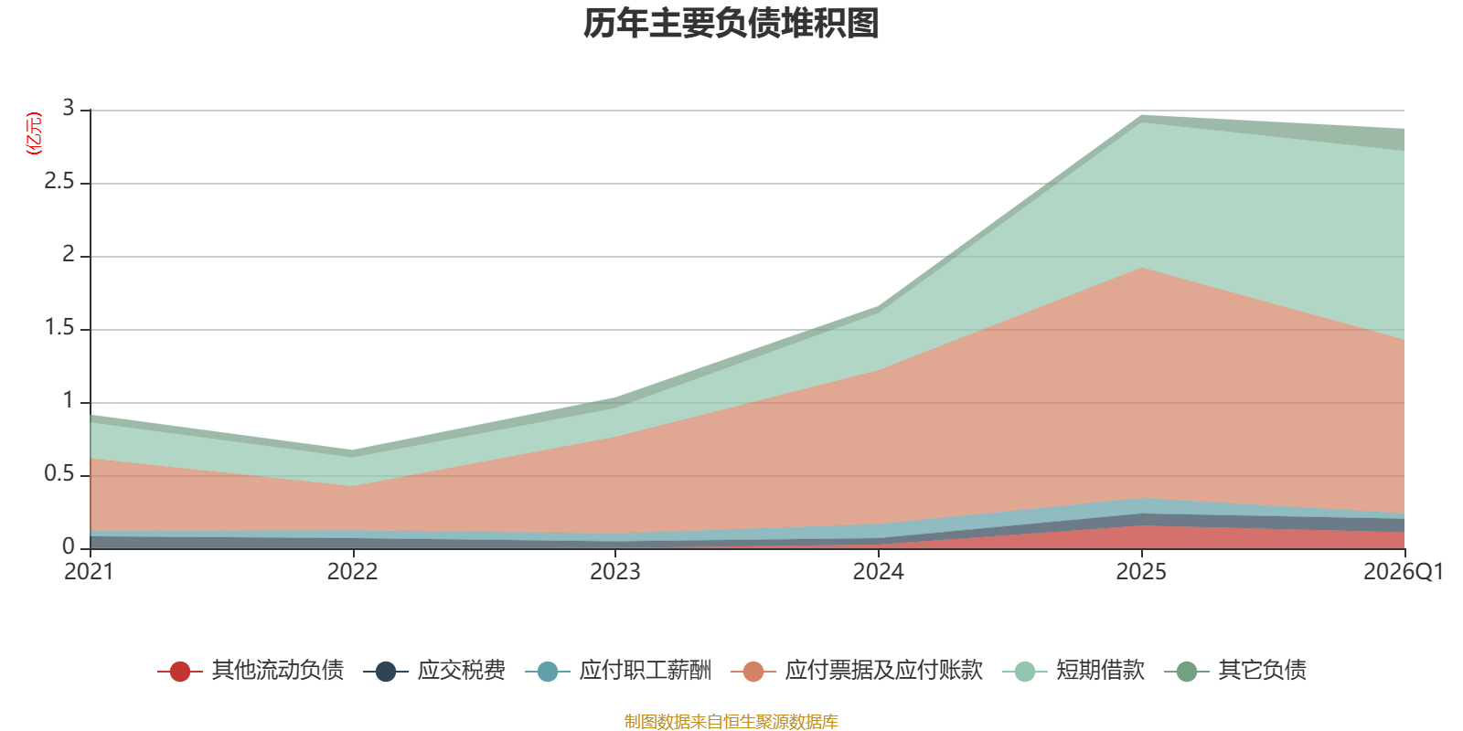 负债重大变化方面,截至2026年一季度末,公司应付票据及应付账款较上年末减少24.77%,占公司总资产比重下降5.78个百分点;短期借款较上年末增加30.3%,占公司总资产比重上升3.95个百分点;租赁负债占公司总资产的1.46%,上年末为0;应付职工薪酬较上年末减少64.13%,占公司总资产比重下降0.96个百分点。