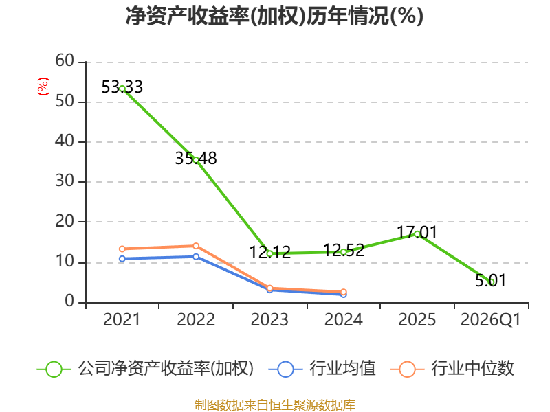 盈利能力方面, 2026年一季度公司加权平均净资产收益率为5.01%,同比上升1.82个百分点。公司2026年第一季度投入资本回报率为3.94%,较上年同期上升1.13个百分点。