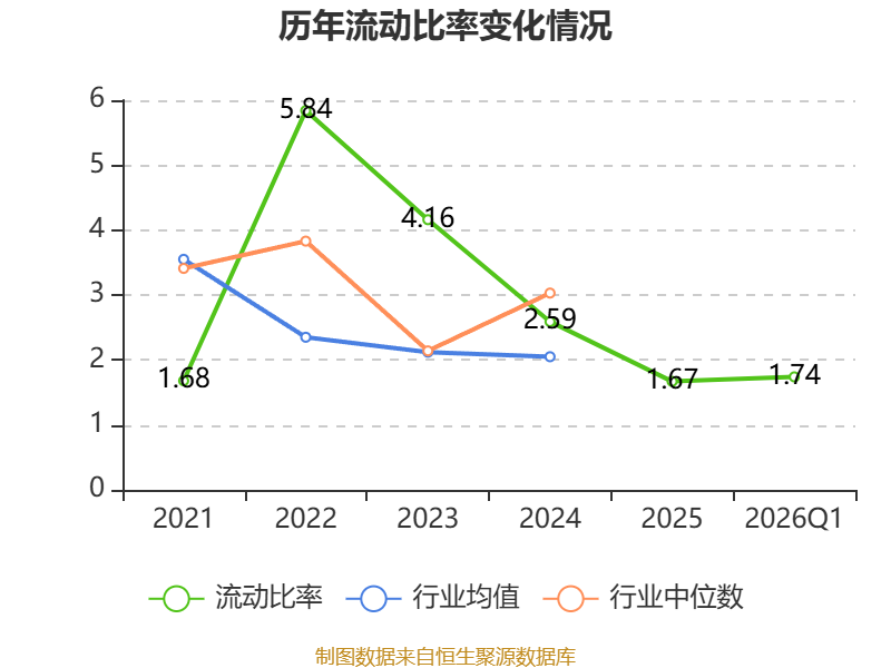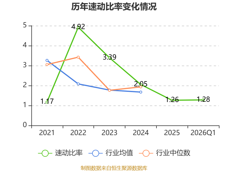 2026年第一季度,公司流动比率为1.74,速动比率为1.28。