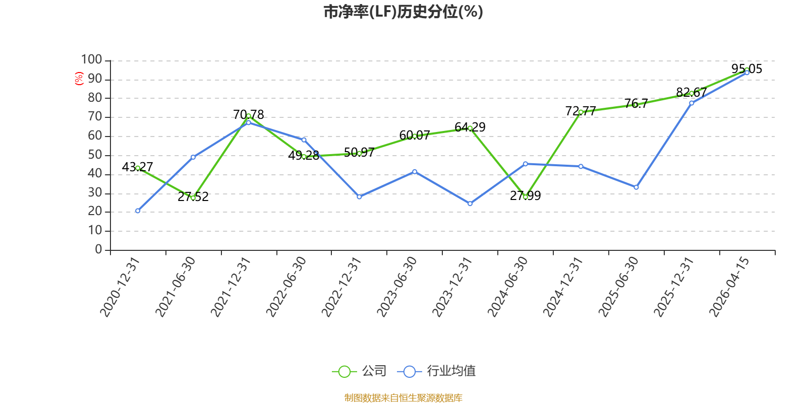 市盈率、市净率为负时,不显示当期分位数,会导致折线图中断。
