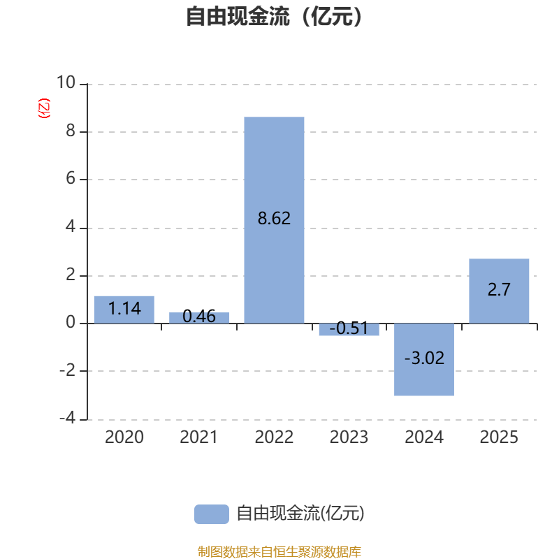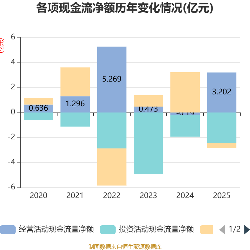 截至2025年,公司经营活动现金流净额为3.2亿元,同比增加3.39亿元;筹资活动现金流净额-4008.91万元,同比减少3.63亿元;投资活动现金流净额-2.45亿元,上年同期为-1.74亿元。