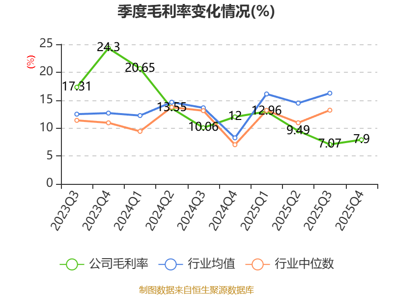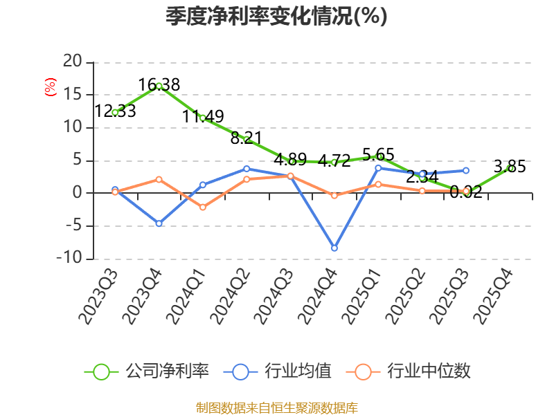 数据显示,2025年公司加权平均净资产收益率为3.95%,较上年同期下降6.67个百分点。公司2025年投入资本回报率为3.57%,较上年同期下降5.09个百分点。