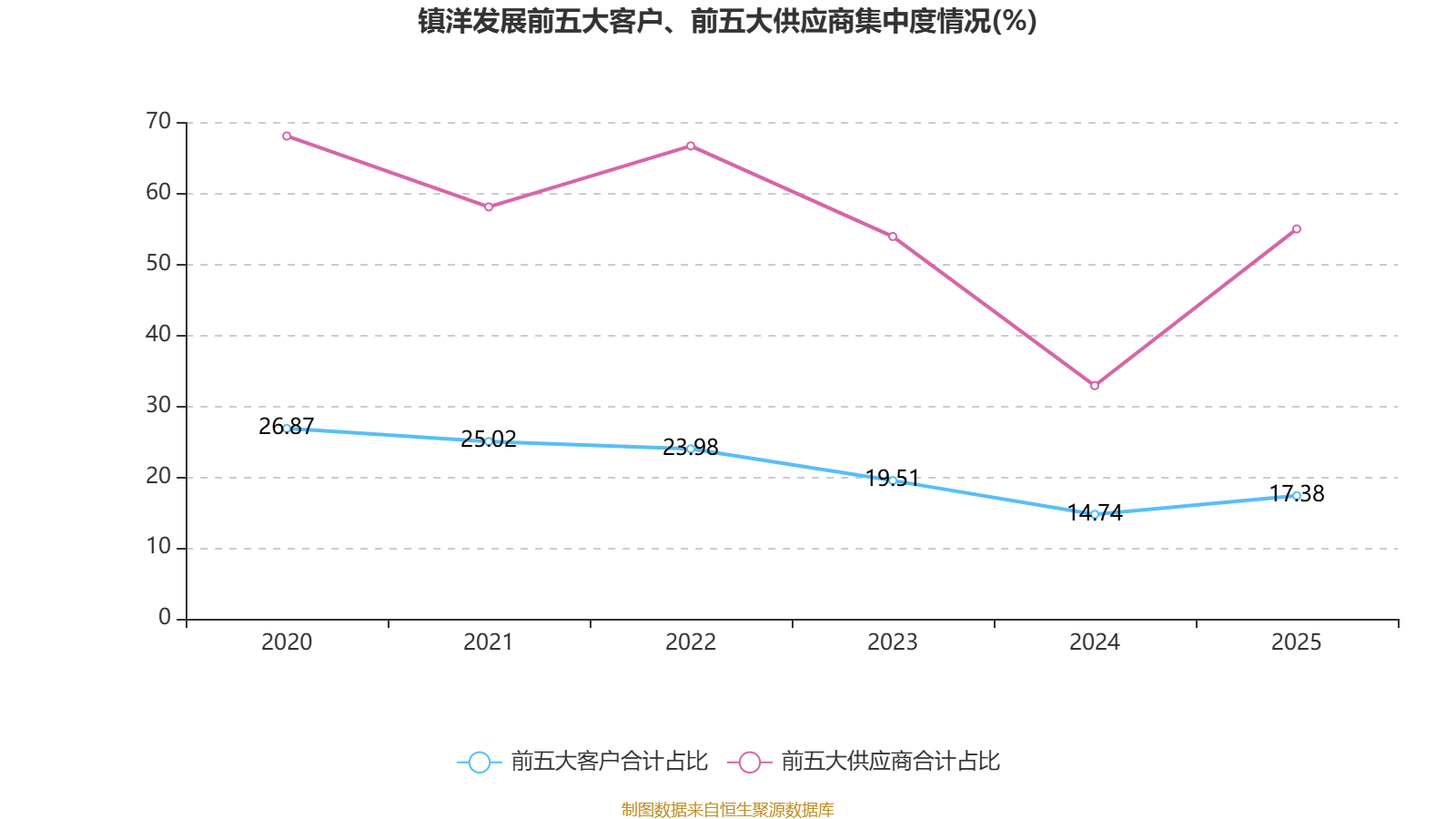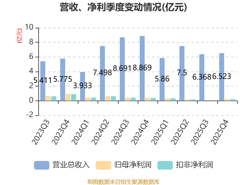 中证智能财讯镇洋发展(603213)4月16日披露2025年年度报告。2025年,公司实现营业总收入26.25亿元,同比下降9.45%;归母净利润7561.81万元,同比下降60.43%;扣非净利润7306.03万元,同比下降60.39%;经营活动产生的现金流量净额为3.2亿元,上年同期为-1901.84万元;报告期内,镇洋发展基本每股收益为0.17元,加权平均净资产收益率为3.95%。公司2025年度分配预案为:拟向全体股东每10股派现2.5元(含税)。