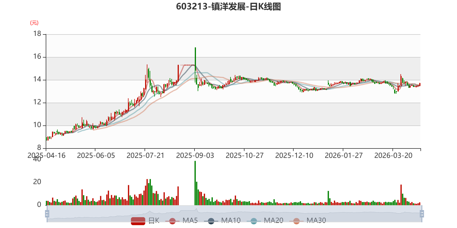 以4月15日收盘价计算,镇洋发展目前市盈率(TTM)约为80.02倍,市净率(LF)约3.12倍,市销率(TTM)约2.3倍。