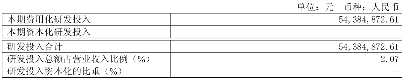 2025年全年,公司研发投入金额为5438.49万元,同比下降10.5%;研发投入占营业收入比例为2.07%,相比上年同期下降0.03个百分点。此外,公司全年研发投入资本化率为0%。