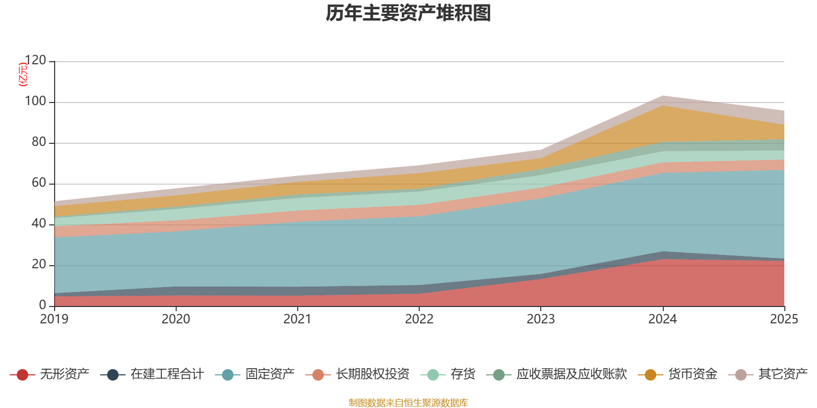 资产重大变化方面,截至2025年末,公司货币资金较上年末减少60.48%,占公司总资产比重下降9.96个百分点;固定资产较上年末增加13.07%,占公司总资产比重上升8.12个百分点;在建工程合计较上年末减少70.88%,占公司总资产比重下降2.59个百分点;应收票据及应收账款较上年末增加21.75%,占公司总资产比重上升1.38个百分点。