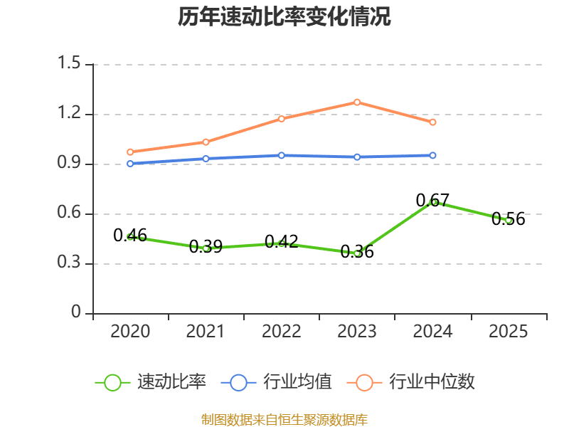 2025年,公司流动比率为0.71,速动比率为0.56。