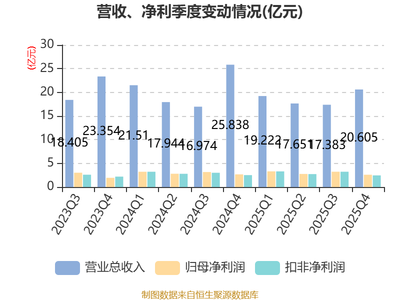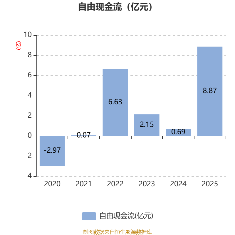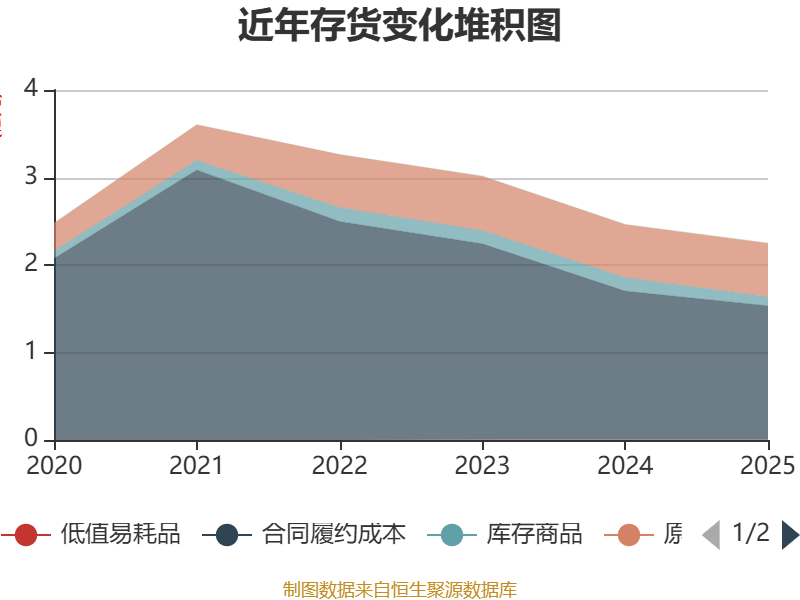 从存货变动来看,截至2025年末,公司存货账面价值为2.25亿元,占净资产的2.25%,较上年末减少2135.4万元。公司本期没有计提存货跌价准备。