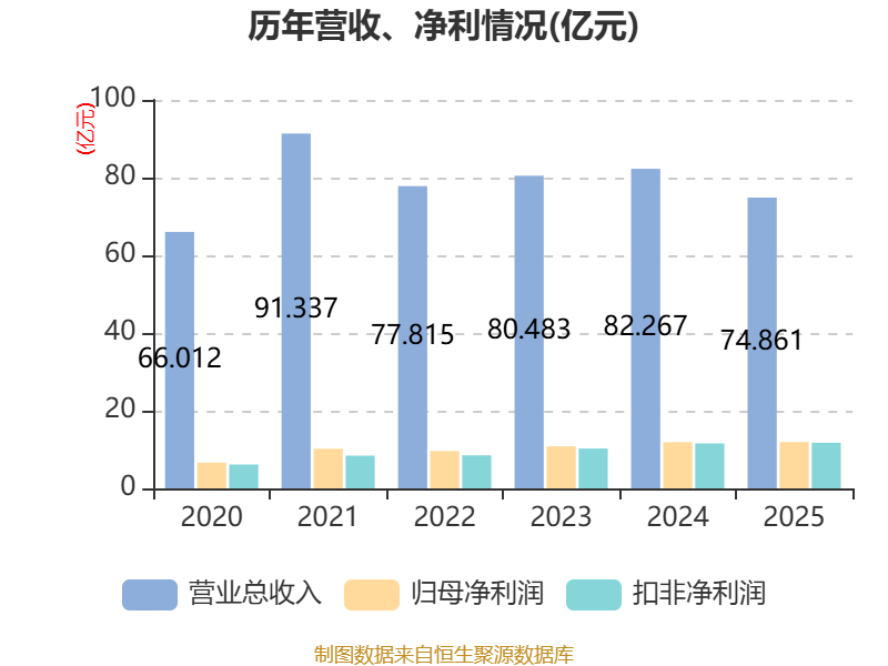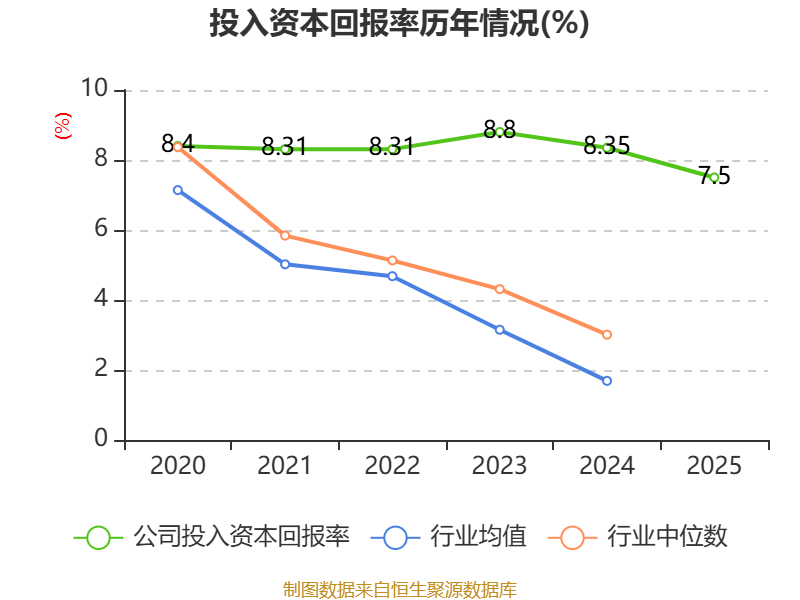 数据显示,2025年公司加权平均净资产收益率为12.44%,较上年同期下降1.19个百分点。公司2025年投入资本回报率为7.5%,较上年同期下降0.85个百分点。