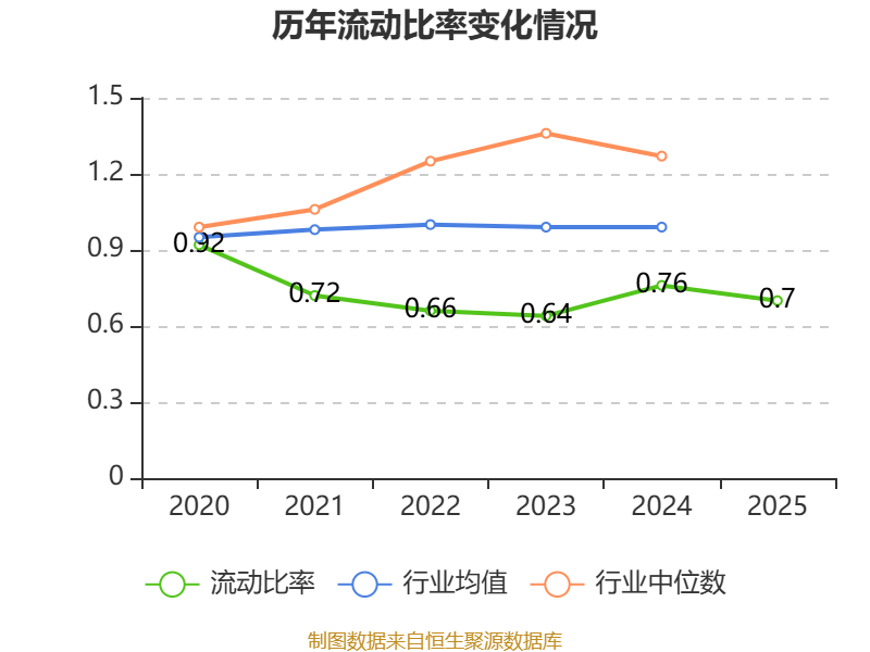 2025年,公司流动比率为0.7,速动比率为0.67。