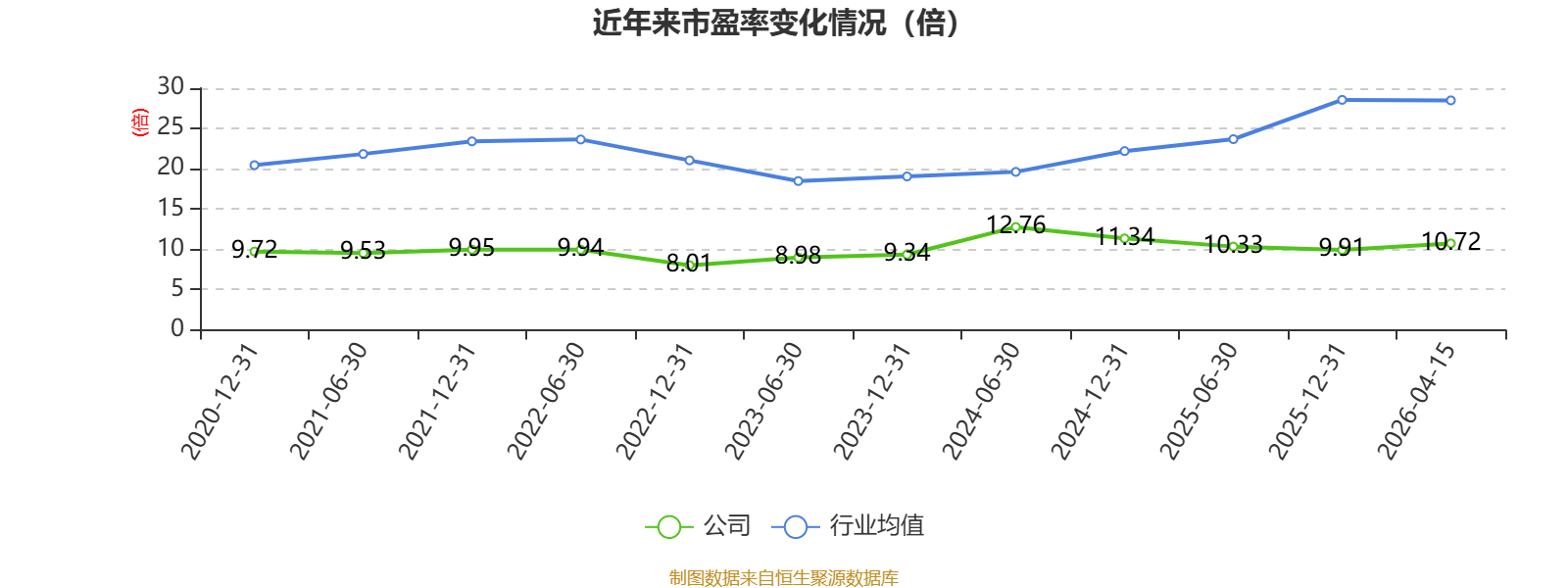 以4月15日收盘价计算,洪城环境目前市盈率(TTM)约为10.72倍,市净率(LF)约1.28倍,市销率(TTM)约1.71倍。