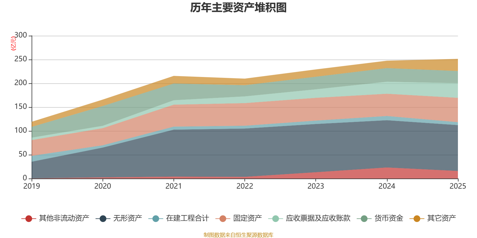 资产重大变化方面,截至2025年末,公司长期应收款占公司总资产的4.54%,上年末为0;其他非流动资产较上年末减少31.64%,占公司总资产比重下降3.06个百分点;应收票据及应收账款较上年末增加21.79%,占公司总资产比重上升2.04个百分点;无形资产较上年末减少2.87%,占公司总资产比重下降1.76个百分点。