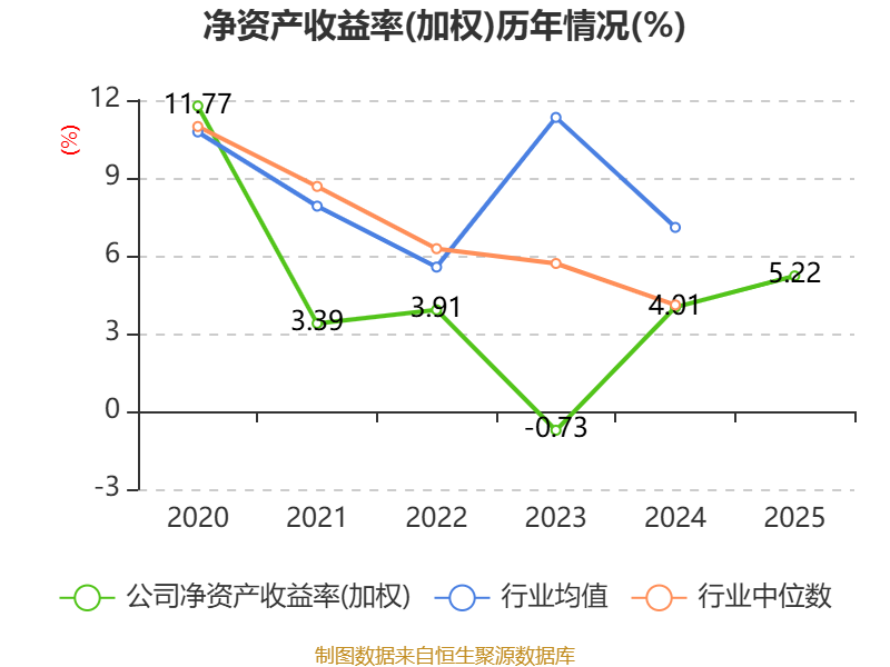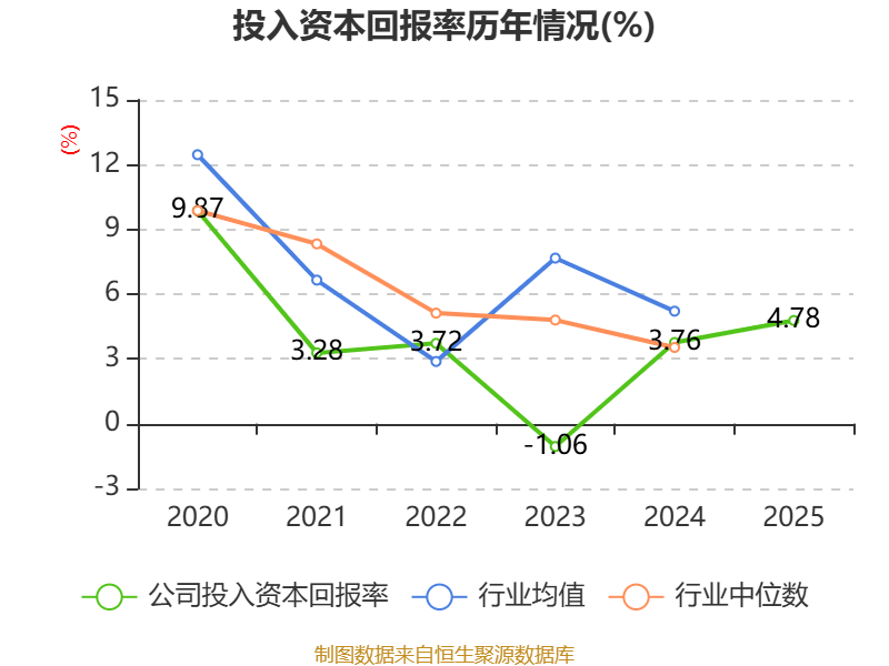数据显示,2025年公司加权平均净资产收益率为5.22%,较上年同期上升1.21个百分点。公司2025年投入资本回报率为4.78%,较上年同期上升1.02个百分点。