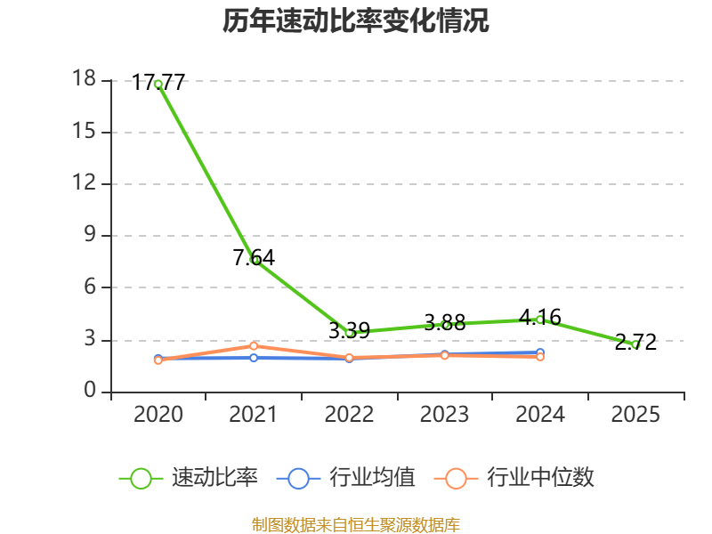 2025年,公司流动比率为4.87,速动比率为2.72。
