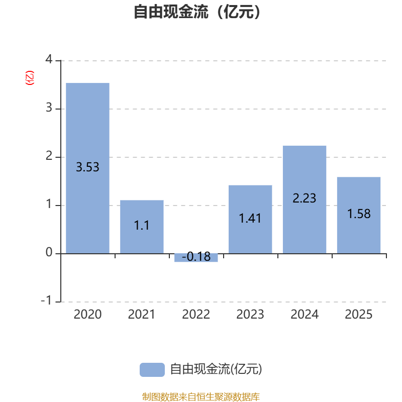 截至2025年,公司经营活动现金流净额为2.32亿元,同比增长8.04%;筹资活动现金流净额-1.16亿元,同比增加5350.68万元;投资活动现金流净额-1.19亿元,上年同期为-5876.18万元。