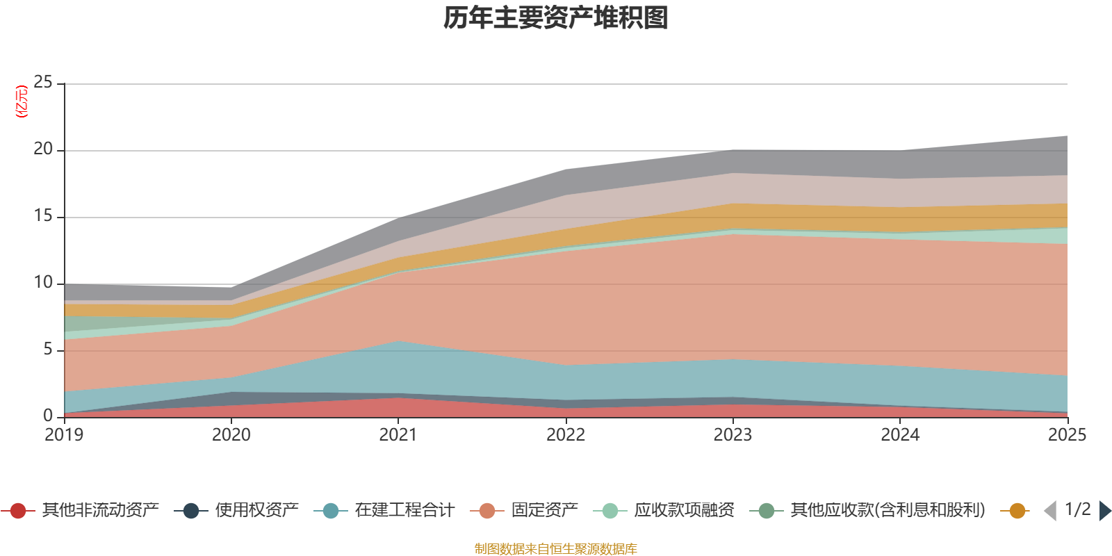 资产重大变化方面,截至2025年末,公司应收款项融资较上年末增加174.18%,占公司总资产比重上升3.44个百分点;交易性金融资产合计较上年末增加222.97%,占公司总资产比重上升3.2个百分点;其他非流动资产较上年末减少62.96%,占公司总资产比重下降2.43个百分点;在建工程合计较上年末减少9.25%,占公司总资产比重下降2.09个百分点。