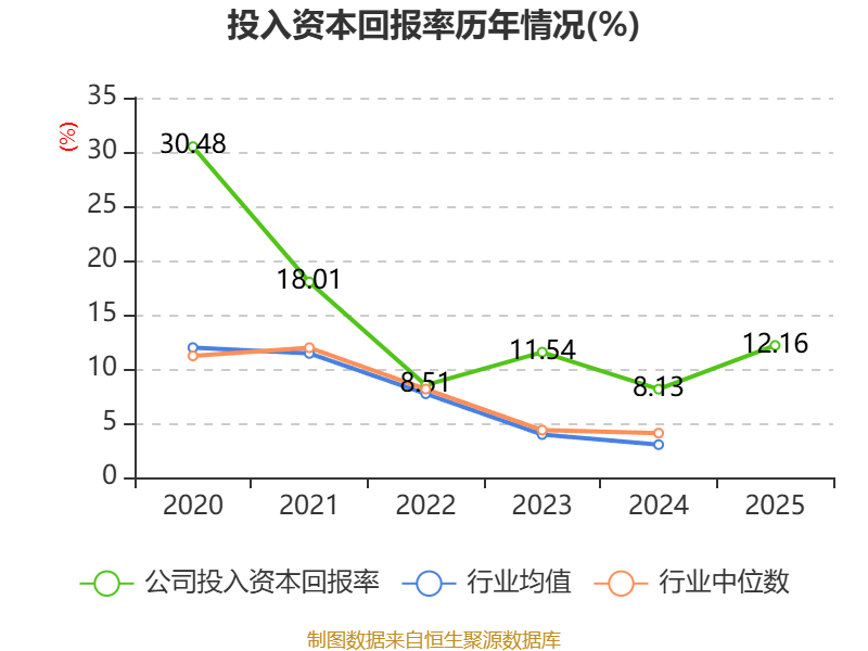 数据显示,2025年公司加权平均净资产收益率为12.52%,较上年同期上升3.89个百分点。公司2025年投入资本回报率为12.16%,较上年同期上升4.03个百分点。