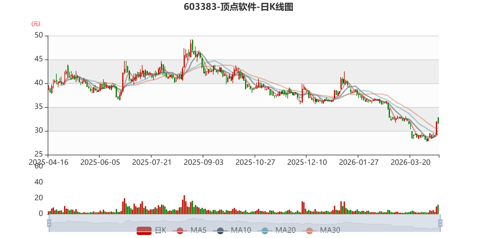 以4月15日收盘价计算,顶点软件目前市盈率(TTM)约为36.45倍,市净率(LF)约4.32倍,市销率(TTM)约11.17倍。