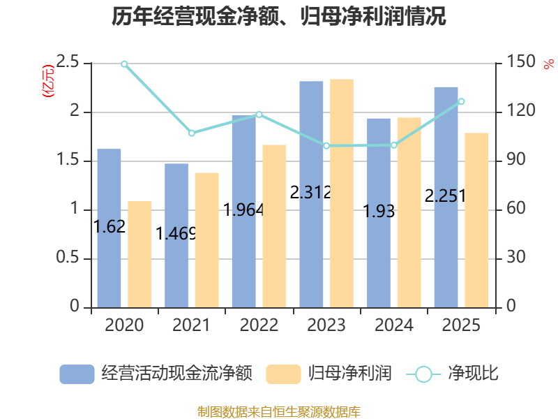 截至2025年,公司经营活动现金流净额为2.25亿元,同比增长16.64%;筹资活动现金流净额-1.64亿元,同比增加7053.48万元;投资活动现金流净额-3.75亿元,上年同期为-2.08亿元。