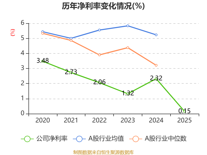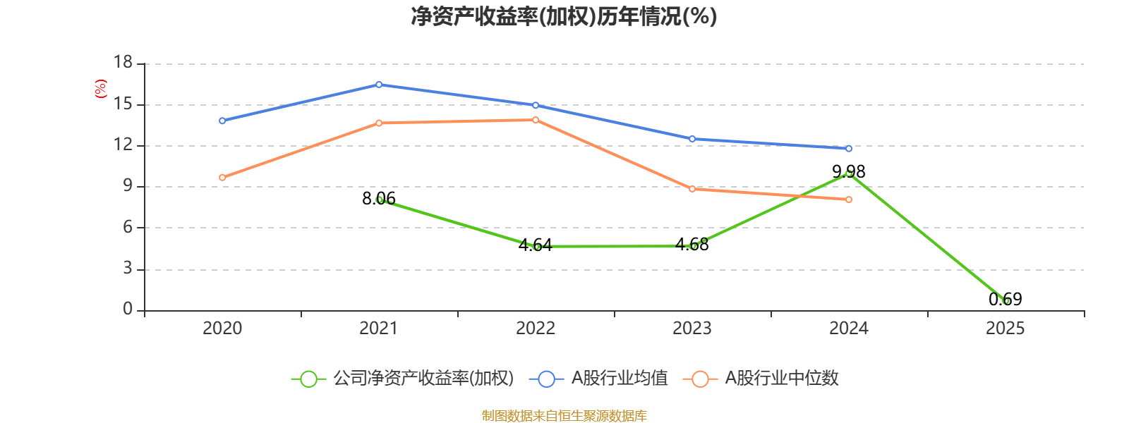 数据显示,2025年公司平均净资产收益率为0.69%,较上年同期下降9.29个百分点。