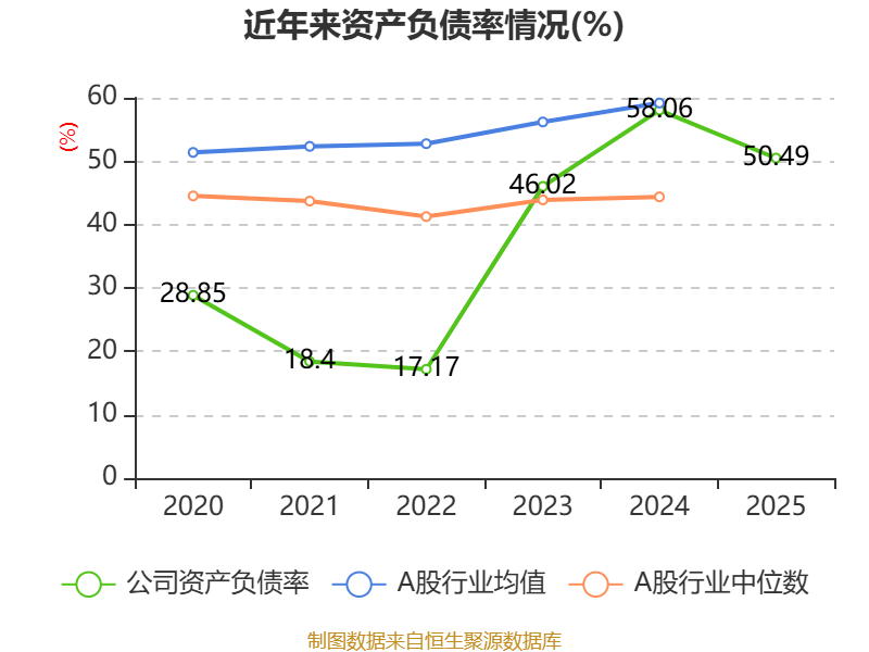 资产重大变化方面,截至2025年末,公司交易性金融资产较上期末减少93.97%,占公司总资产比重下降3.25个百分点;应收票据及应收账款较上期末减少15.63%,占公司总资产比重下降2.72个百分点;预付账款较上期末增加23.46%,占公司总资产比重上升2.35个百分点;使用权资产较上期末增加304.82%,占公司总资产比重上升1.78个百分点。