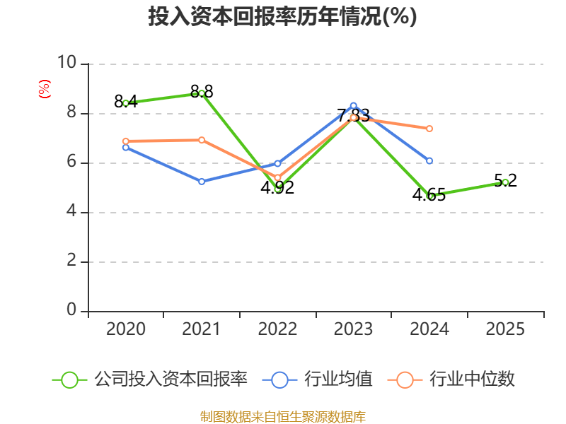 数据显示,2025年公司加权平均净资产收益率为7.62%,较上年同期上升1.91个百分点。公司2025年投入资本回报率为5.2%,较上年同期上升0.55个百分点。