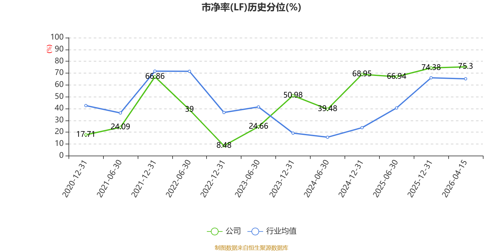市盈率、市净率为负时,不显示当期分位数,会导致折线图中断。