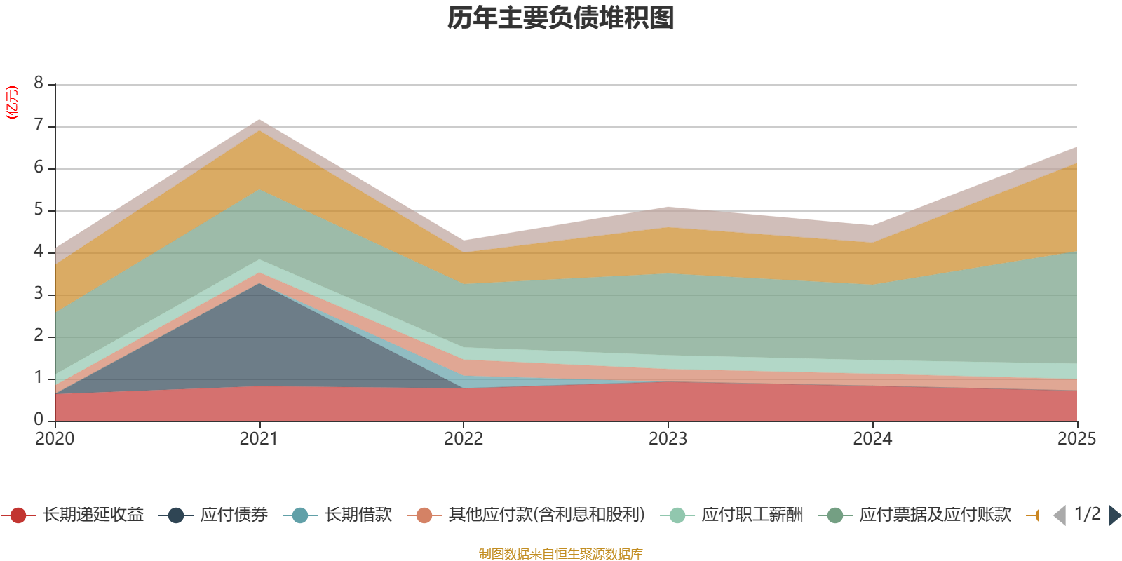 负债重大变化方面,截至2025年末,公司短期借款较上年末增加109.4%,占公司总资产比重上升5.2个百分点;应付票据及应付账款较上年末增加49.04%,占公司总资产比重上升3.48个百分点;长期递延收益较上年末减少13.59%,占公司总资产比重下降1.19个百分点;租赁负债较上年末减少48.77%,占公司总资产比重下降0.29个百分点。