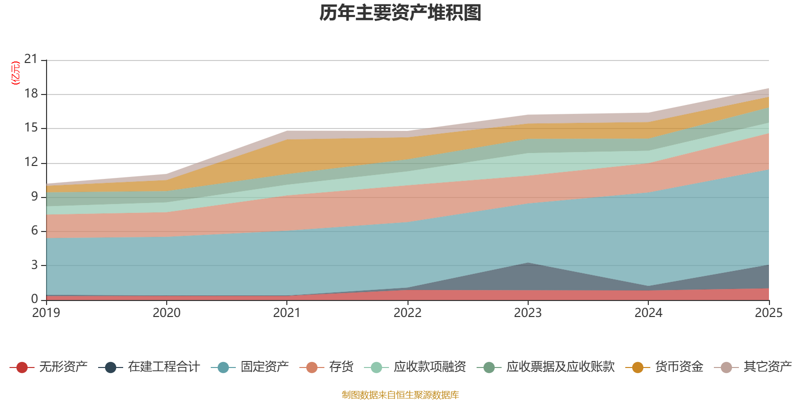 资产重大变化方面,截至2025年末,公司在建工程合计较上年末增加429.26%,占公司总资产比重上升8.78个百分点;固定资产较上年末增加1.72%,占公司总资产比重下降5.02个百分点;货币资金较上年末减少36.25%,占公司总资产比重下降3.86个百分点;应收款项融资较上年末减少15.08%,占公司总资产比重下降1.66个百分点。
