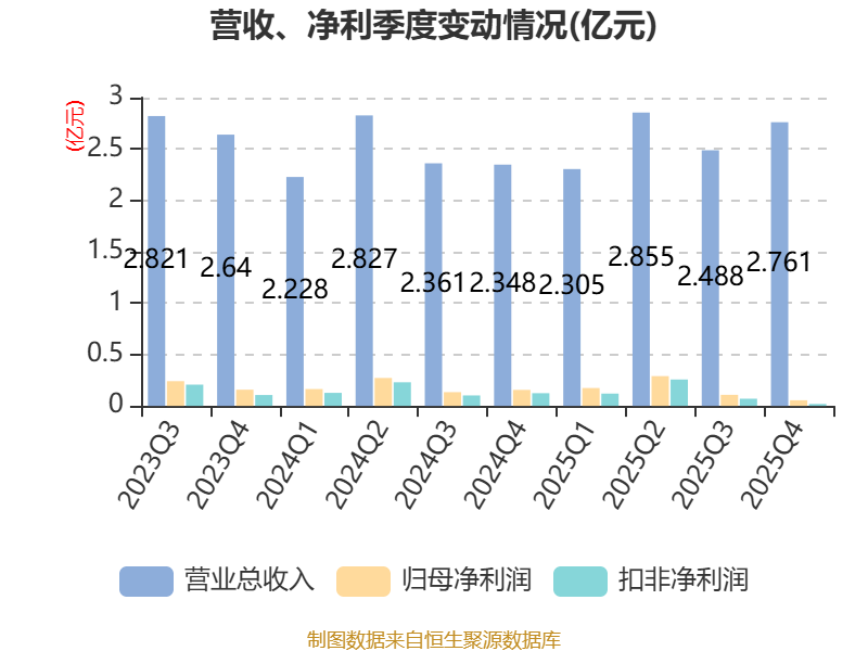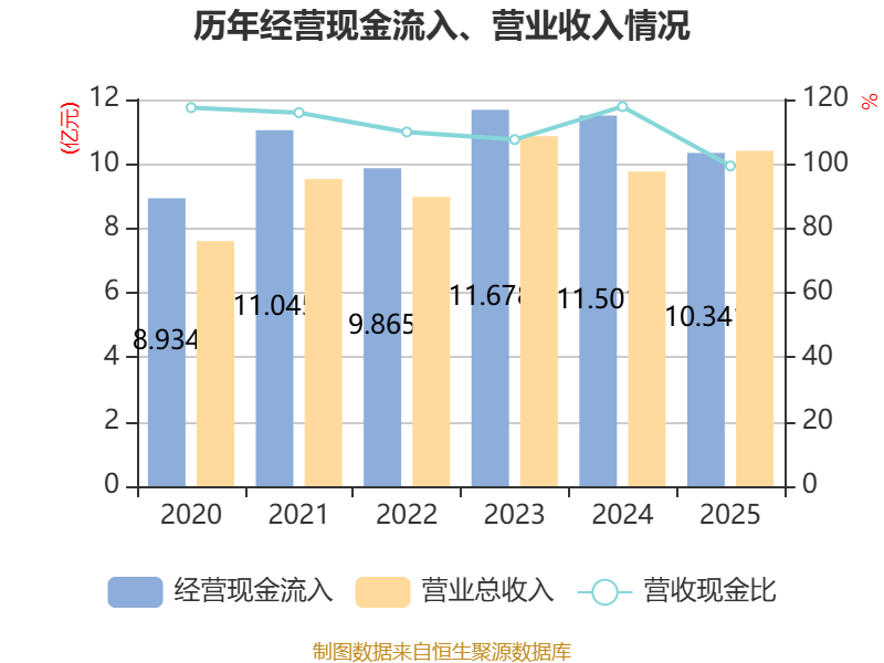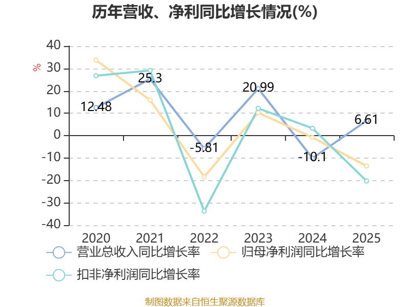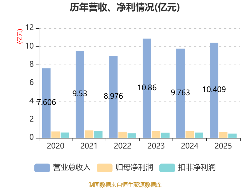中证智能财讯中大力德(002896)4月16日披露2025年年度报告。2025年,公司实现营业总收入10.41亿元,同比增长6.61%;归母净利润6270.60万元,同比下降13.57%;扣非净利润4647.56万元,同比下降20.27%;经营活动产生的现金流量净额为3072.29万元,同比下降85.30%;报告期内,中大力德基本每股收益为0.32元,加权平均净资产收益率为5.29%。公司2025年度分配预案为:拟向全体股东每10股派现1.2元(含税)。