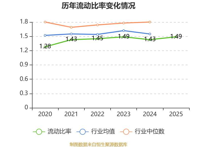 2025年,公司流动比率为1.49,速动比率为0.57。