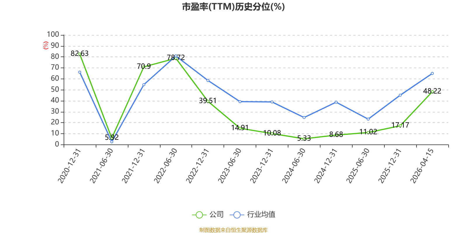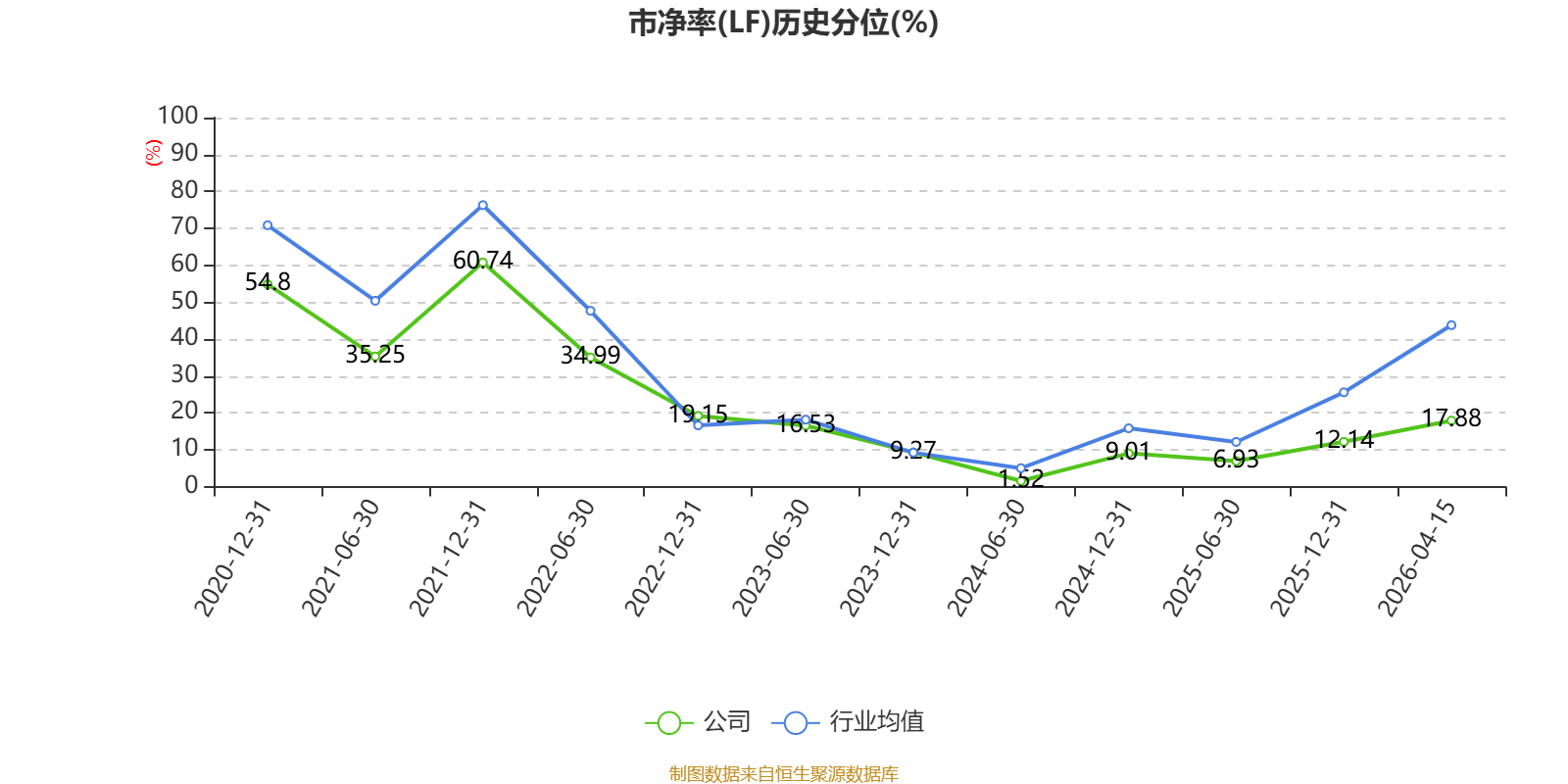 市盈率、市净率为负时,不显示当期分位数,会导致折线图中断。