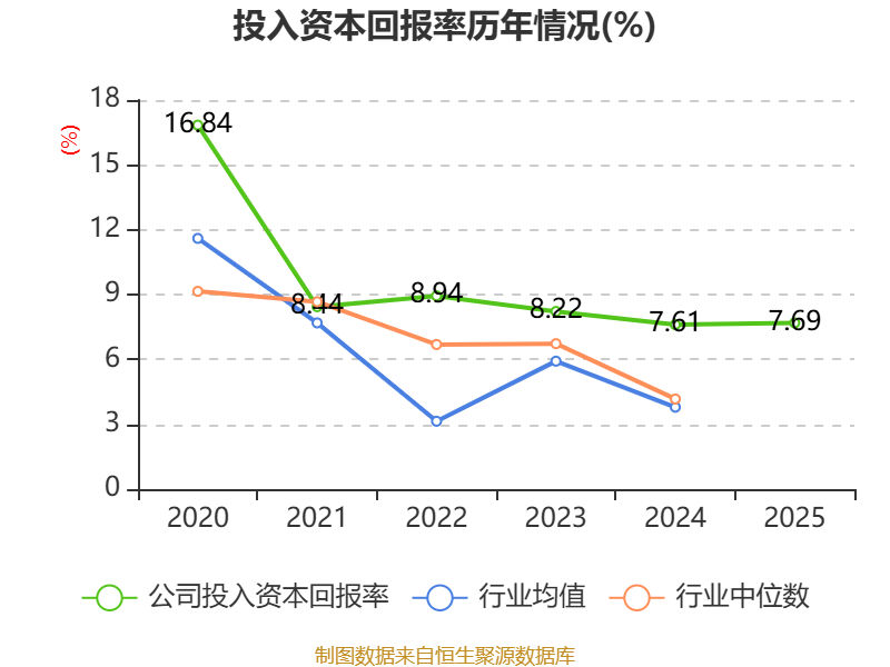 数据显示,2025年公司加权平均净资产收益率为10.35%,较上年同期上升0.82个百分点。公司2025年投入资本回报率为7.69%,较上年同期上升0.08个百分点。