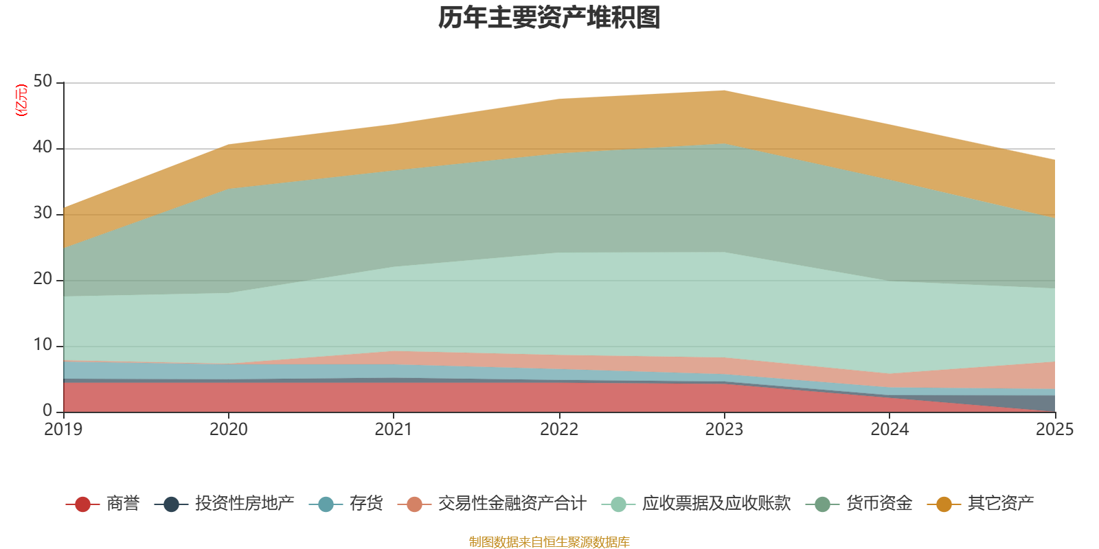 资产重大变化方面,截至2025年末,公司货币资金较上年末减少30.66%,占公司总资产比重下降7.39个百分点;交易性金融资产合计较上年末增加95.87%,占公司总资产比重上升5.96个百分点;投资性房地产较上年末增加502.13%,占公司总资产比重上升5.52个百分点;商誉较上年末减少100%,占公司总资产比重下降4.81个百分点。
