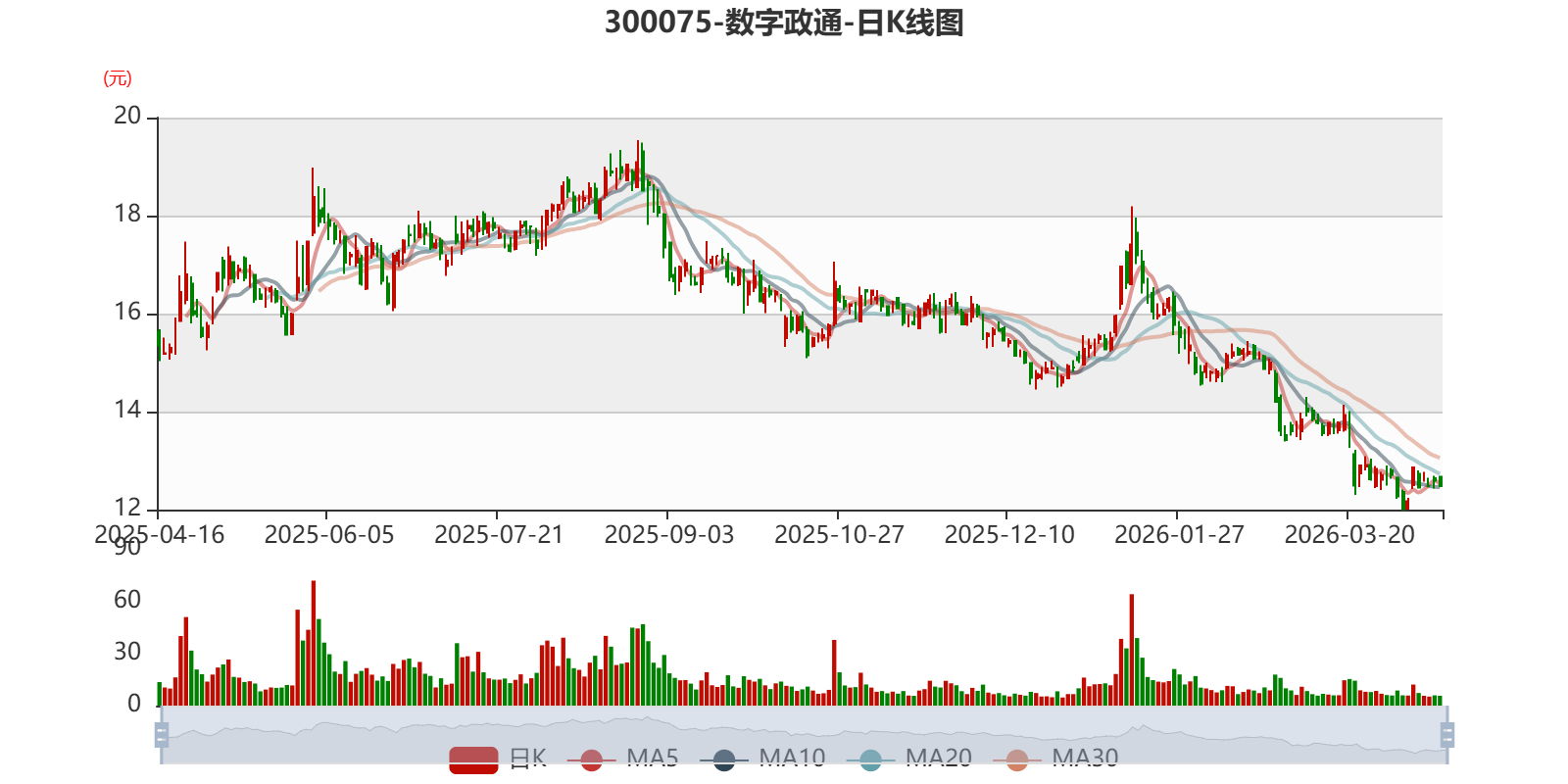 中证智能财讯数字政通(300075)4月16日披露2025年年度报告。2025年,公司实现营业总收入6.02亿元,同比下降15.64%;归母净利润亏损3.79亿元,上年同期亏损3.96亿元;扣非净利润亏损4.39亿元,上年同期亏损4.22亿元;经营活动产生的现金流量净额为4570.41万元,同比增长429.63%;报告期内,数字政通基本每股收益为-0.61元,加权平均净资产收益率为-11.34%。
