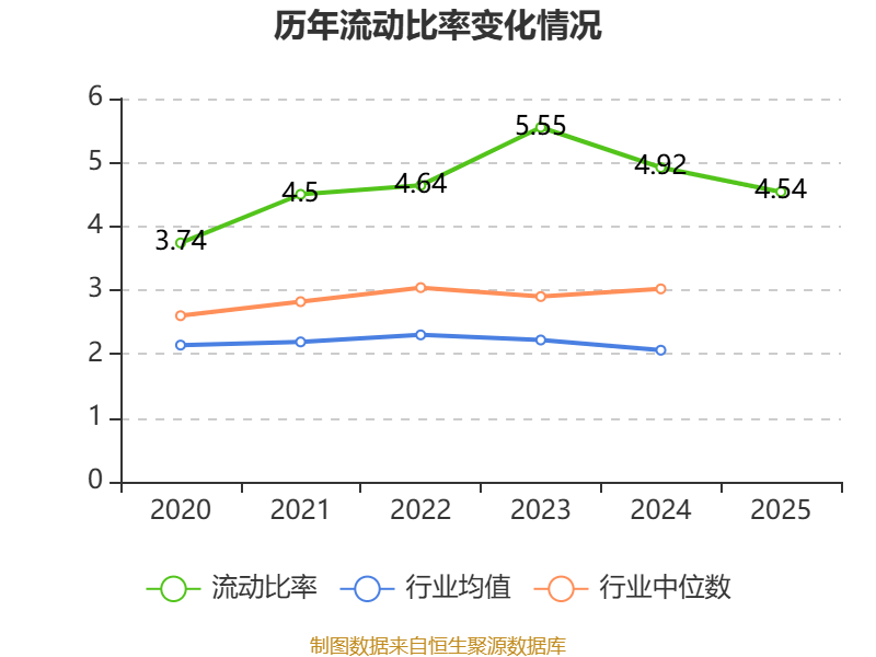 2025年,公司流动比率为4.54,速动比率为4.38。