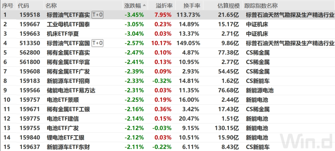 新能源、油气、工业母机等板块深度回调,相关ETF跌幅居前。